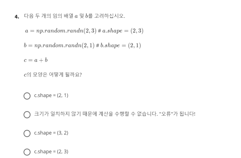 하지만 브로드 캐스팅을 통해 모양이 같아져야 하는데, b의 모양으론 불가능합니다