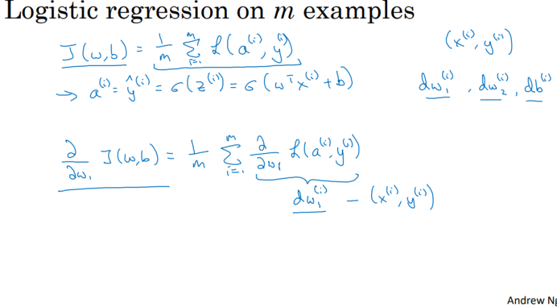 But training logistic regression model, you have not just one training example given training sets of M training examples. In the next video, let's see how you can take these ideas and apply them to learning, not just from one example, but from an entire training set.