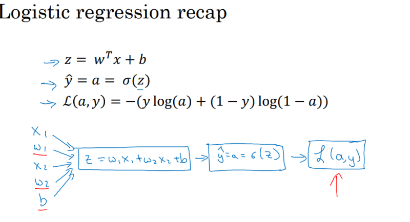 Loss(a, y) = -(ylog(a) + (1-y) log(1-a))이며,