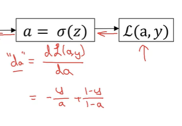 여기서 d L(a, y) / d a를 변수 이름 da로 표현하겠습니다