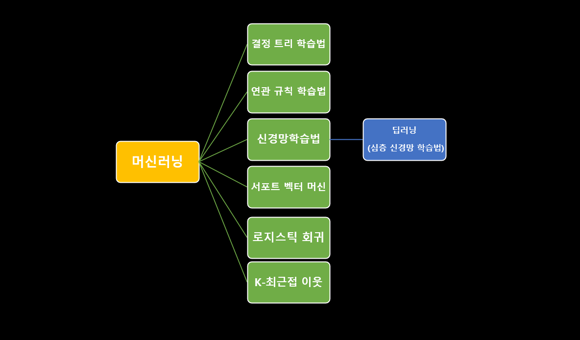 (위의 자료 참고) 딥러닝(Deep learning)은 머신러닝(Machine Learning)의 세부 분야입니다.