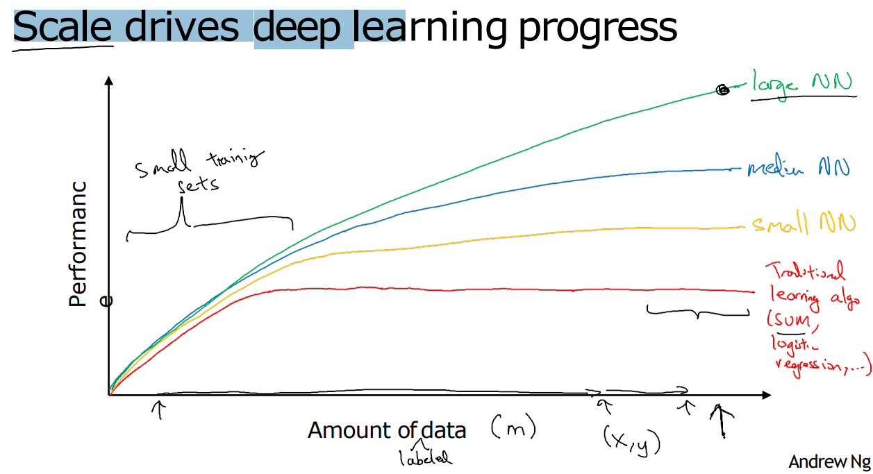 데이터의 양이 많으면 많을수록, 신경망이 복잡할수록 딥러닝 모델의 성능은 머신러닝을 압도합니다.