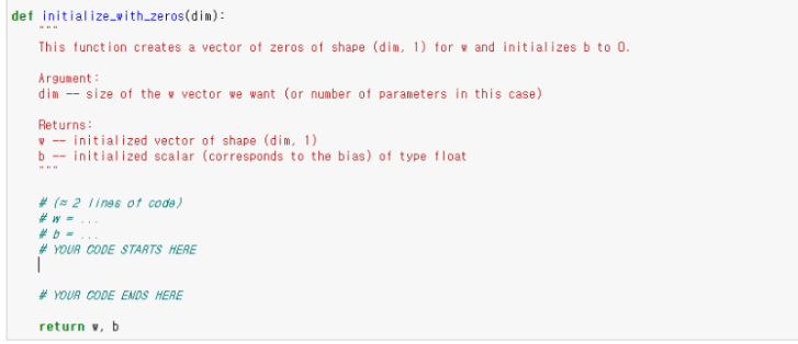 저번에 구현해주었던 initialize_with_zeros(dim)을 불러와줍시다.