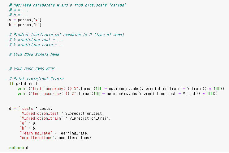바로 직전 구현해놓은 predict()를 불러와 작성하면 끝입니다!
