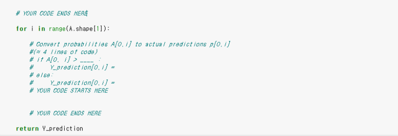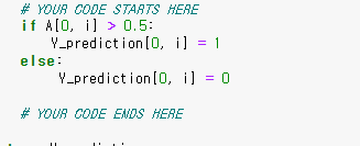 예측을 벡터 Y_prediction에 저장합니다. 원하는 경우 for 루프에서 if/else 문을 사용할 수 있습니다.