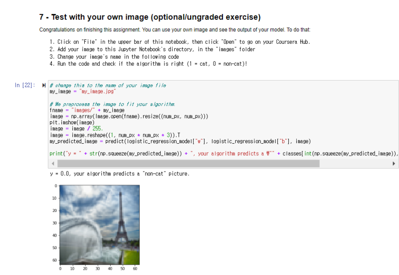 제가 가진 에펠탑 사진을 테스트해보았더니 , 고양이가 아니라고 판정 주는 걸 확인할 수 있습니다!