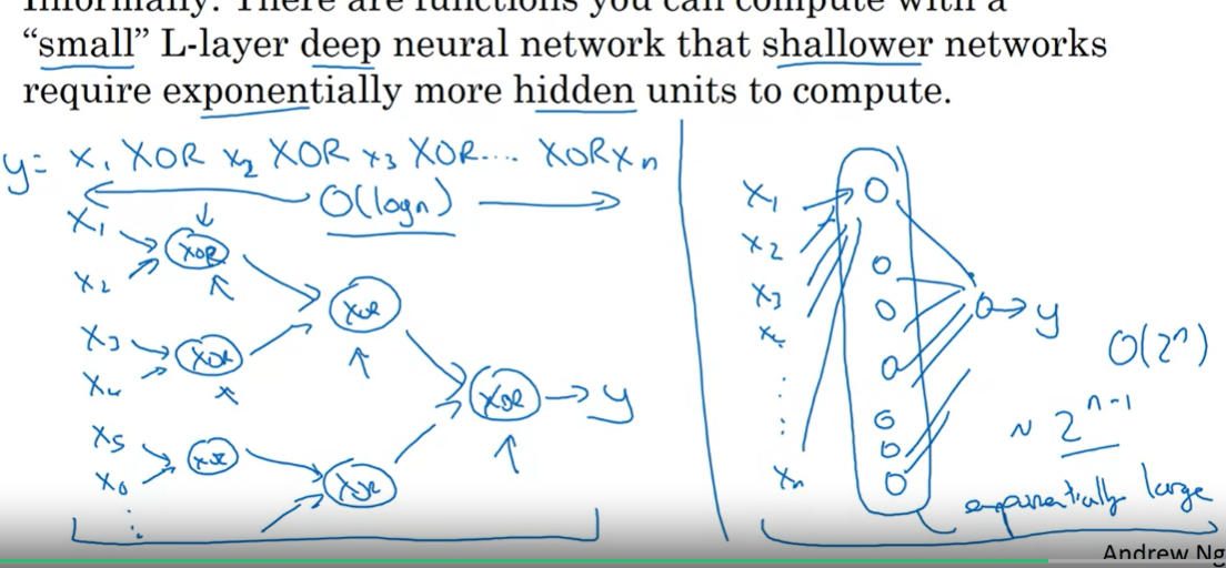오른쪽의 얕은 신경망은 결과를 도출해내기 위해서 2'n이라는 기하급수적으로 훨씬 많은 연산을 해야 합니다.