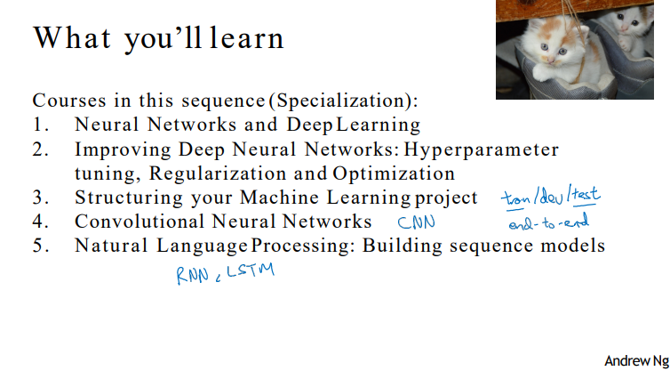 저희가 배우는 건 1번째 코스인 , 신경망 및 딥러닝 (Neural Networks and Deep learning) 코스 입니다.