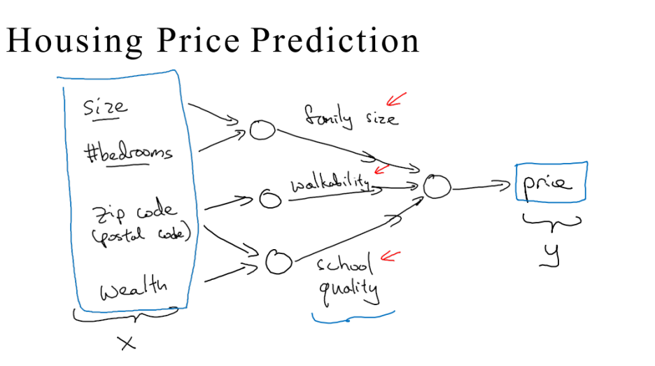 어떤 주택의 크기, 방의 개수, 교통 편의성, 동네의 수준을 입력 x로 입력하고 , 그 주택의 가격을 결과 y 라 하겠습니다.