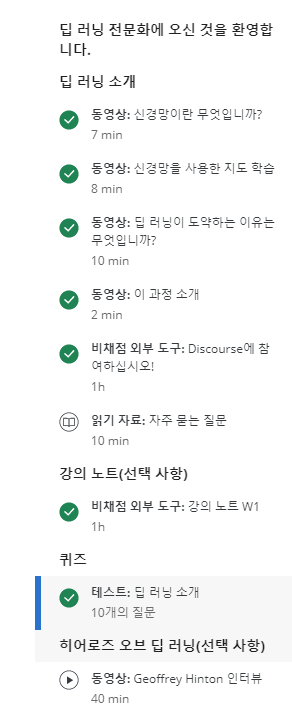 신경망 및 딥러닝 코스의 1주 차 강의는
