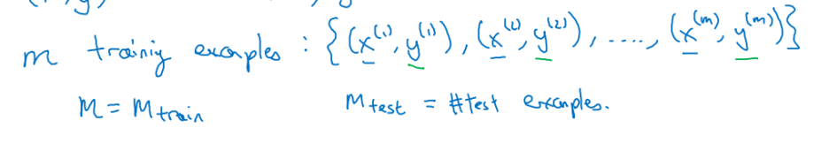 그리고 훈련 세트를 { ( X1 , Y1 ) , (X2 , Y2) ~~~~~ ( Xm-1 , Ym-1) , (Xm , Ym) }라고 합시다.