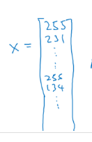 픽셀 하나하나에 적혀있는 채도 값들을 합쳐서 하나의 차원 특징 벡터 (feature Vetor) X라 합시다.