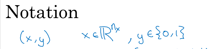 X, Y에 대해 정의해 준 것이고, 바로 이어서 로지스틱 회귀(logistic Regression)에 대해 더 자세히 배워봅시다.